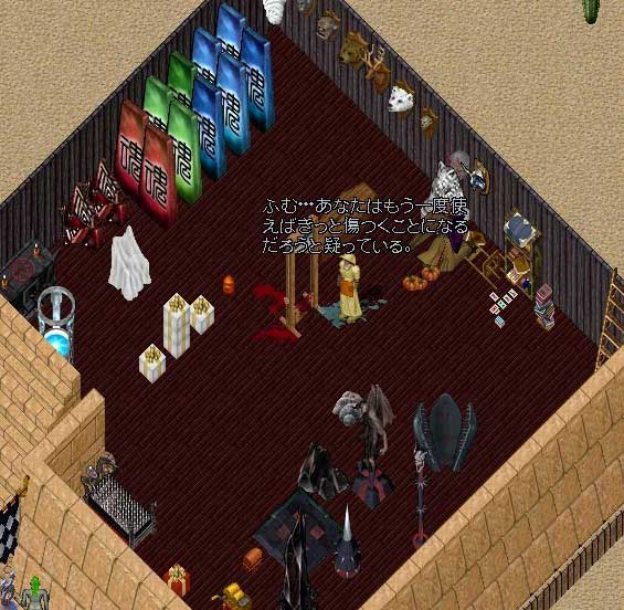 他のベンダーショップで見かけて、ウチも玄関ステップに旅のお供NPCを設置してみました。
