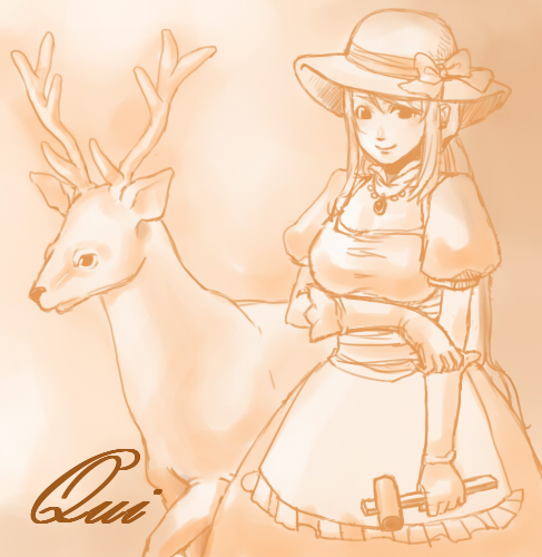 本人+アイテムまたは動物を一つという条件の中、「ハンマーは身体の一部!」の主張のもと鹿を入れてもらったりw。